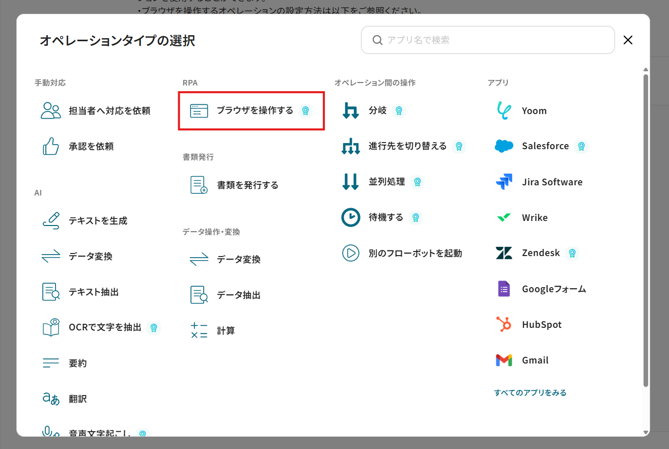 ・ブラウザを操作するオペレーションの設定方法は以下をご参照ください。