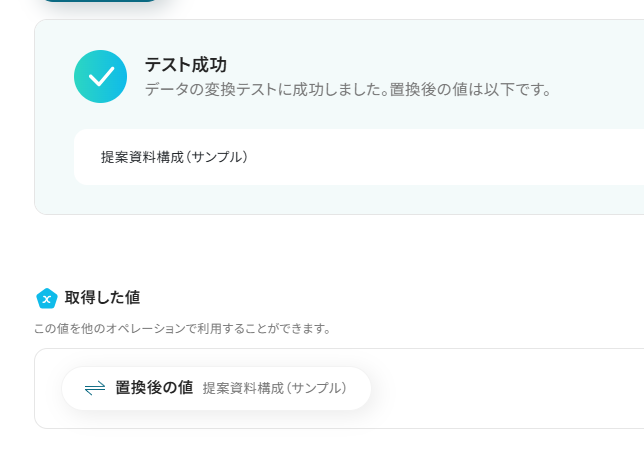 ※こちらで設定した値を、以降のオペレーションで利用することができます。