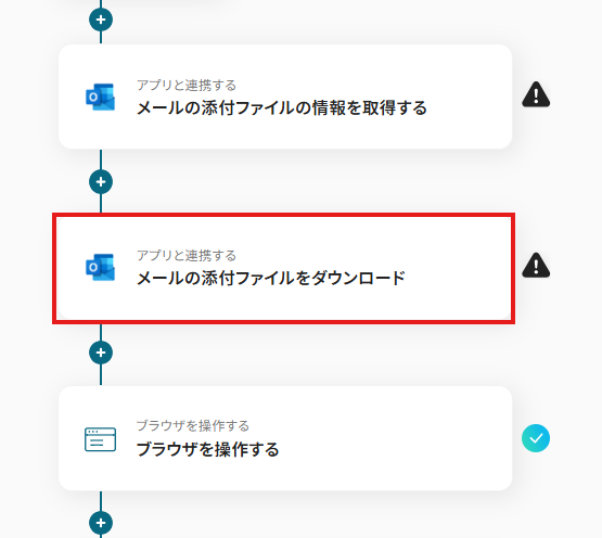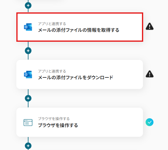 1.アプリと連携する「メールの添付ファイルの情報を取得する」をクリックしましょう。