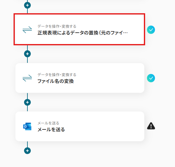 1.データを操作・変換する「正規表現によるデータの置換(元のファイル名から拡張子を削除)」をクリックしましょう。