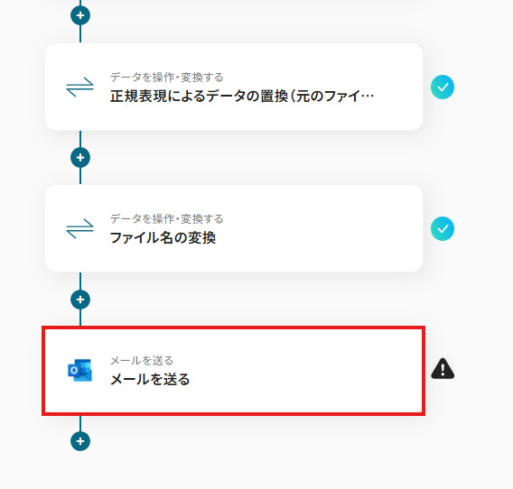 ④+マークを押し、メールを送るオペレーションから任意のメールツールを選択して、以下設定を行い保存します。