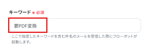 今回は、メールの件名を設定例と同じく「要PDF変換」にしたため、「要PDF変換」と入力しています。