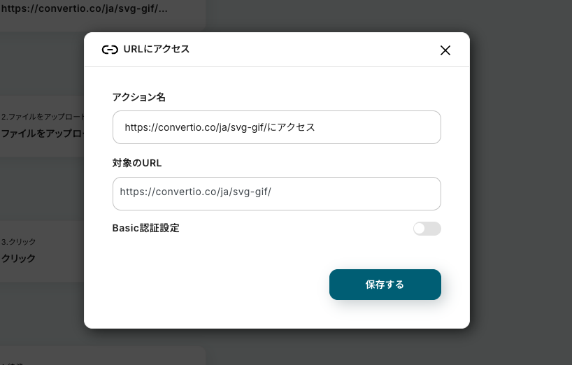 このアクションでは、データ変換が可能なツールサイトへのアクセスが設定されています。