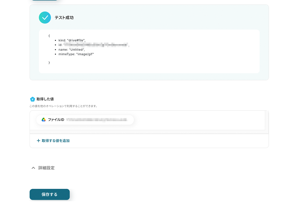 ⑩テストを行い、値が取得できたか確認して保存します。