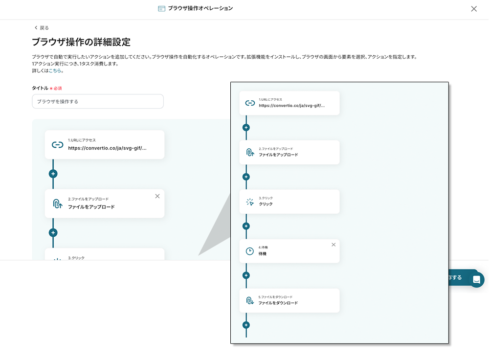 ・ブラウザを操作するオペレーションの設定方法は下記をご参照ください。