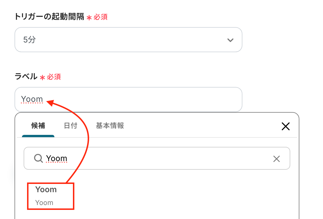 ※アウトプットを使って動的に値を変更する点についてはこちらを参照ください。https://intercom.help/yoom/ja/articles/8223528