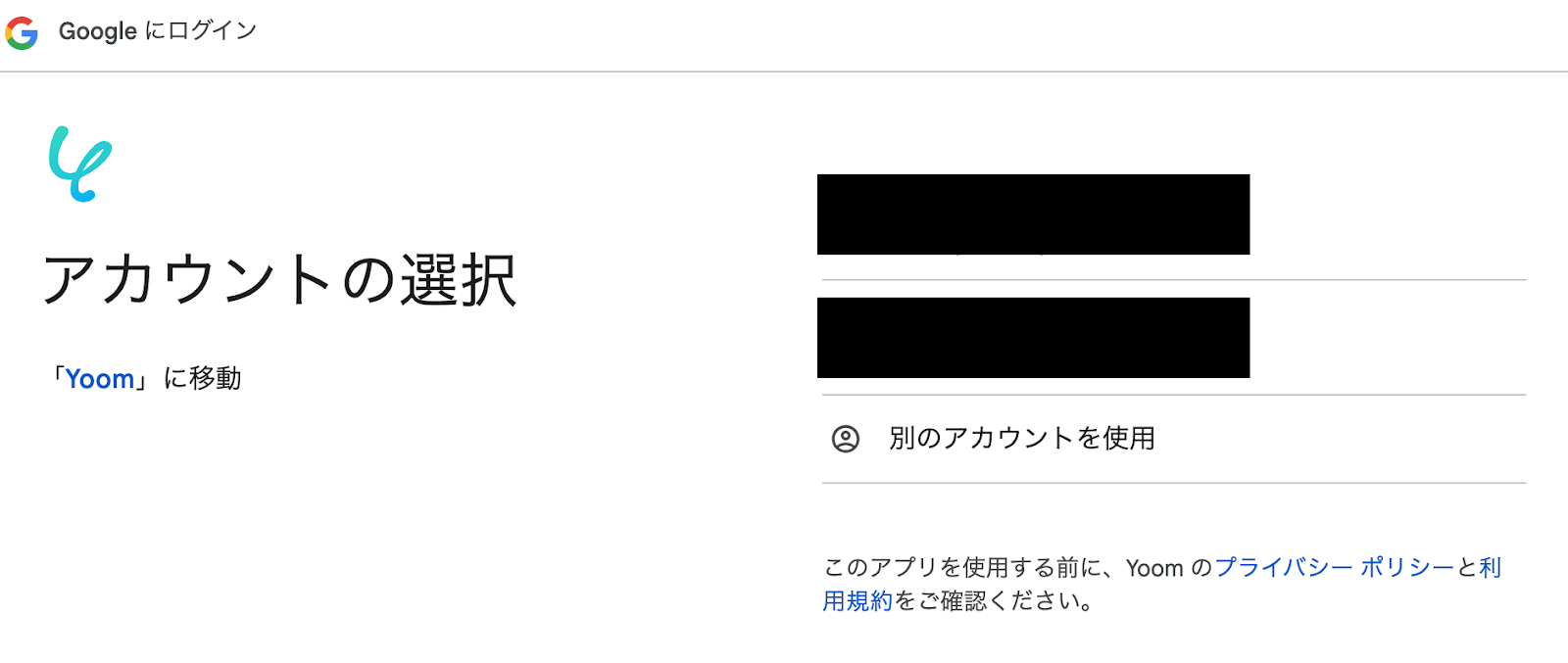アカウント選択画面になるので、今回連携したいアカウントをクリックします。
