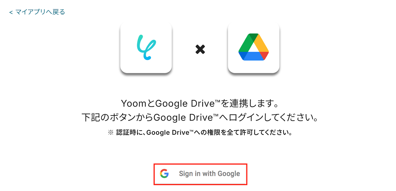 ・Google Drive、Google スプレッドシート、Google ChatそれぞれとYoomを連携してください。