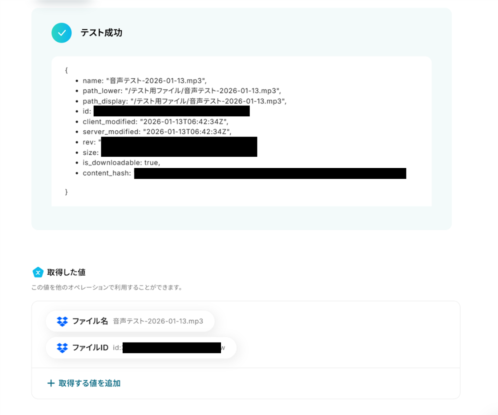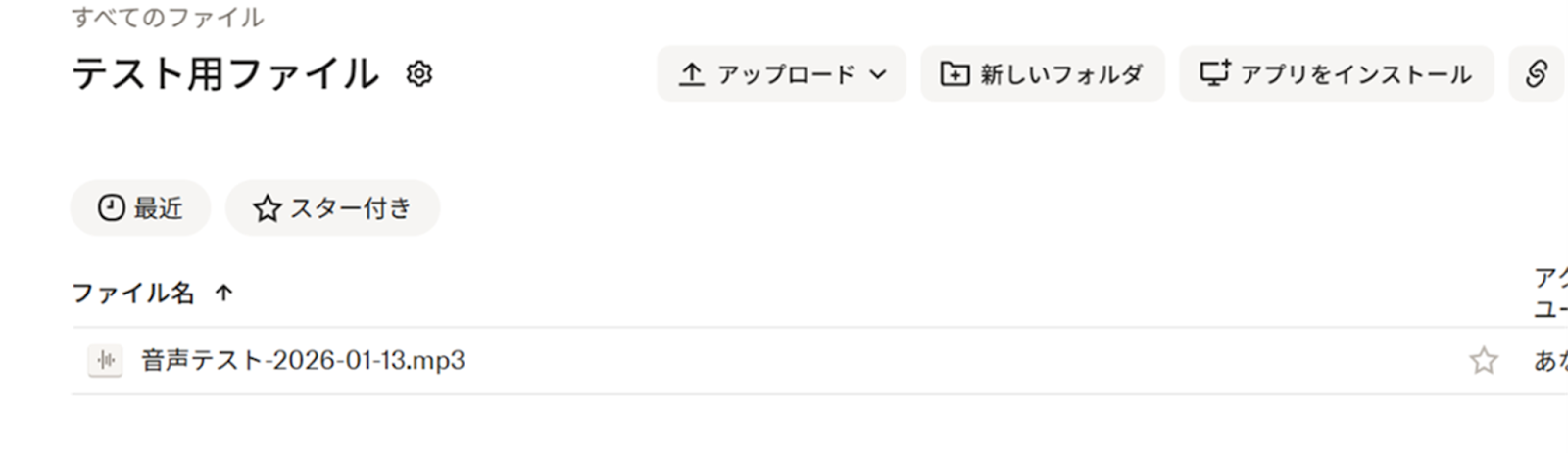 テストに成功すると、Dropboxにテスト用のデータが反映されていました!