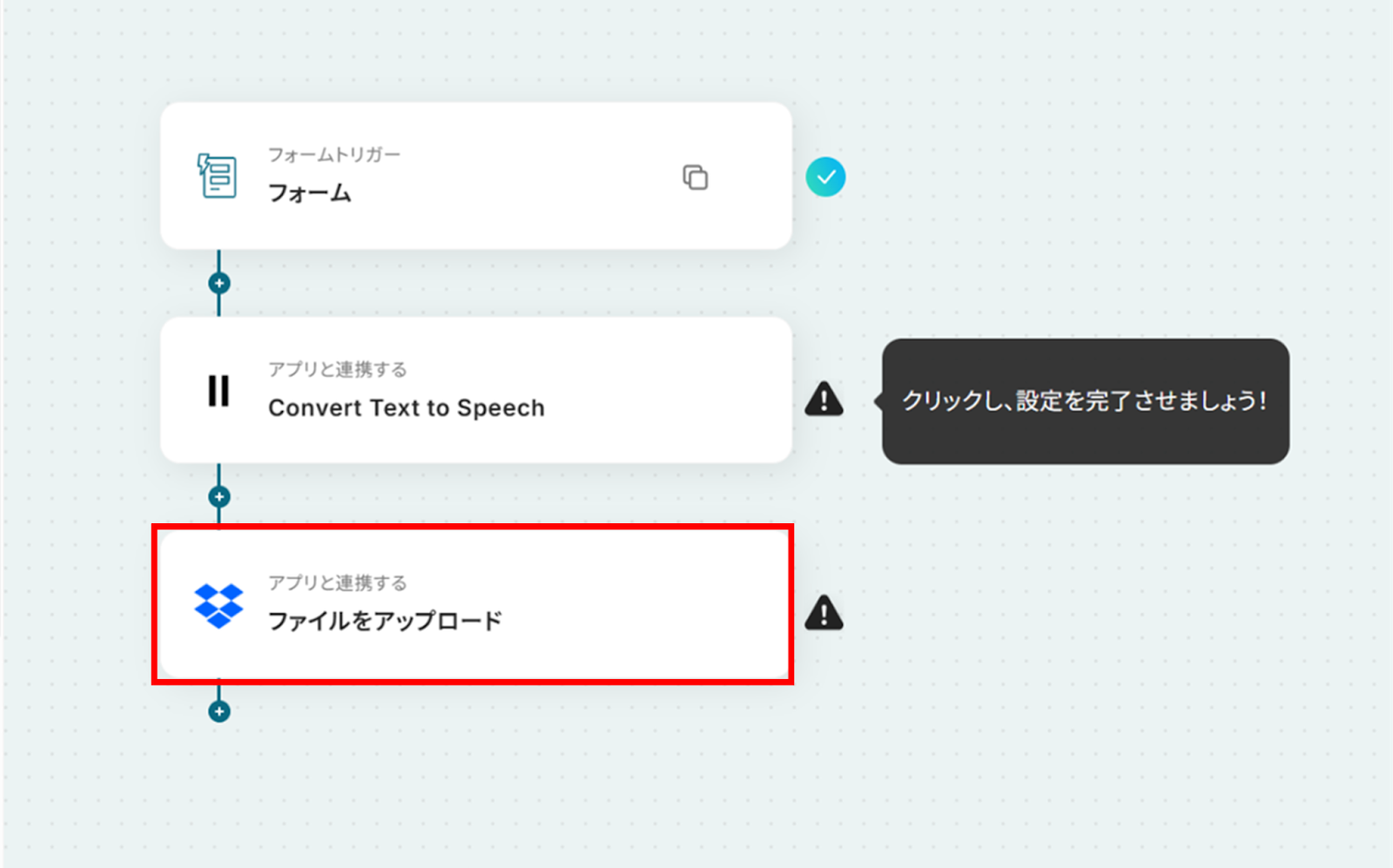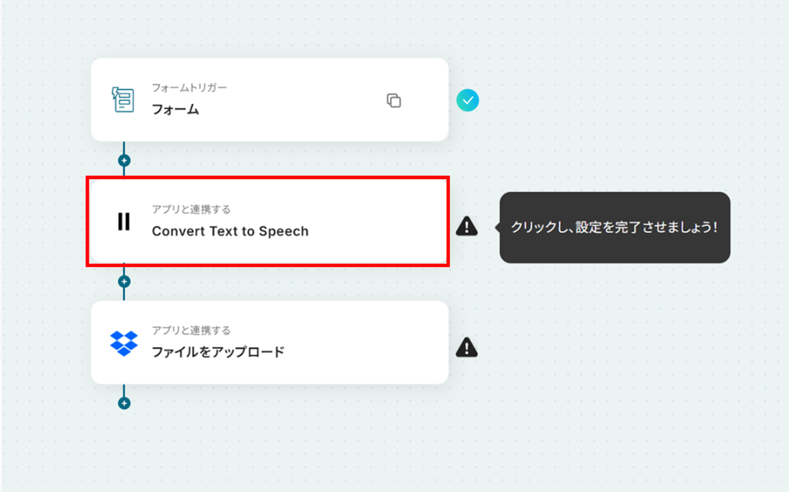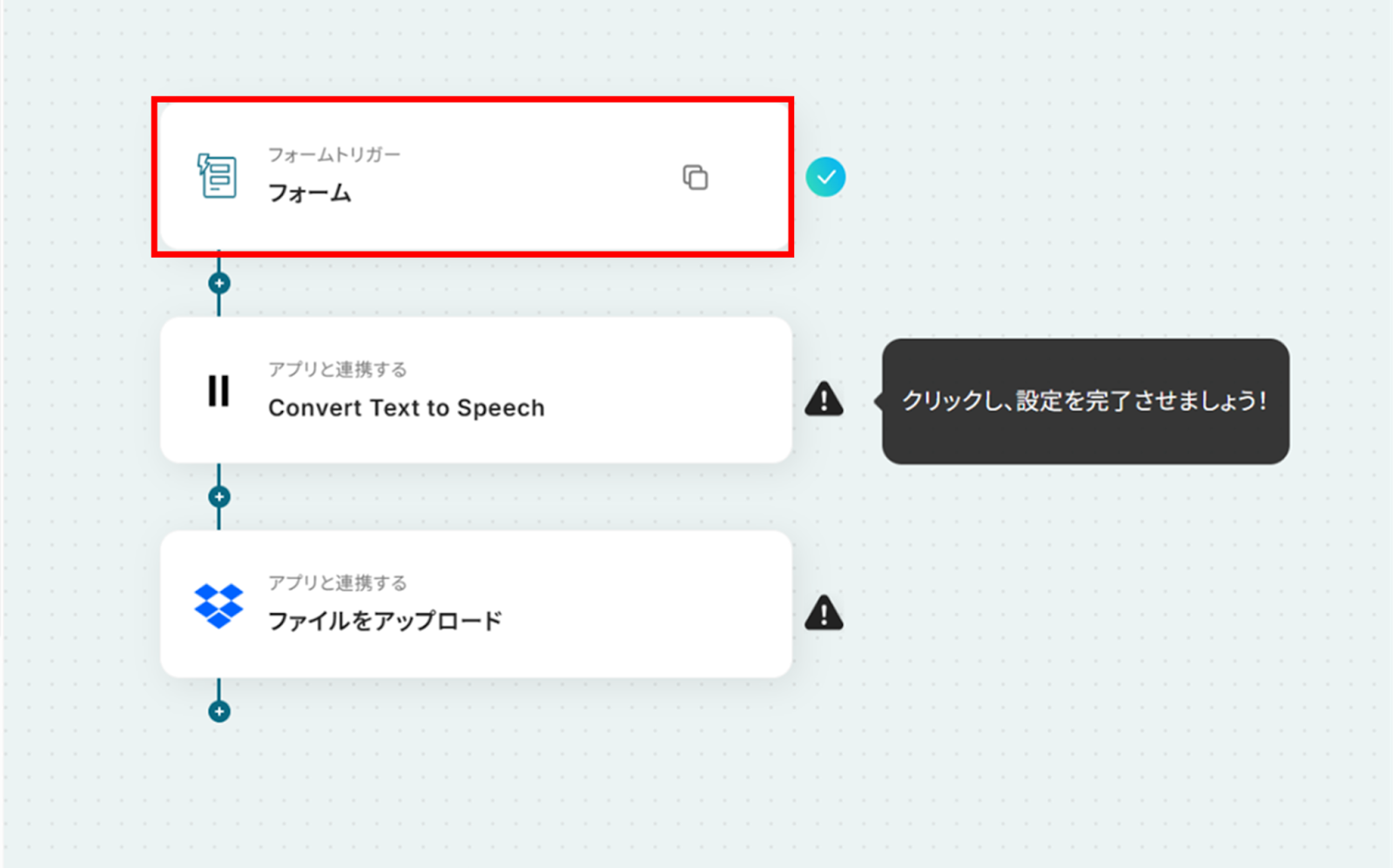それではここから代表的な例として、フォームから情報が送信された際に、その内容をElevenLabsで音声ファイルに変換し、Dropboxに自動で保存するフローを解説していきます!