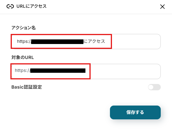 まず、「1.URLにアクセス」をクリックして、任意のアクション名と変換サイトのURLを入力します。