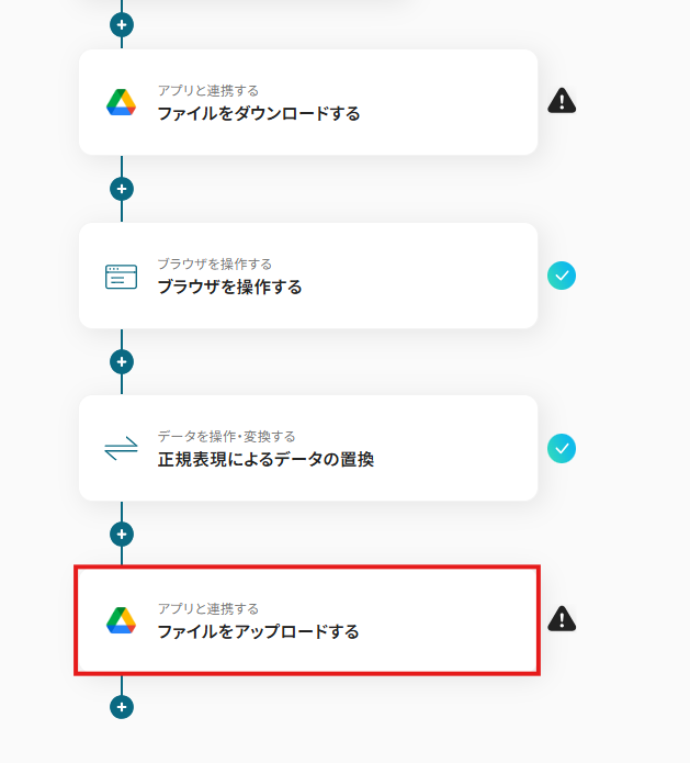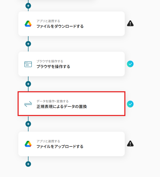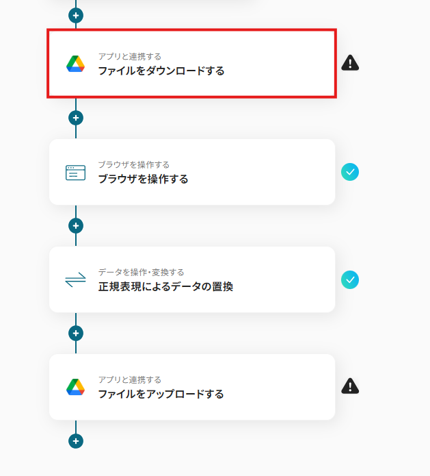 ファイルを変換するためのWeb上の操作として、「3.クリック」というアクションを追加しています。