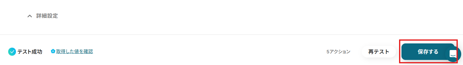 設定を終えたら、「テスト」を実行し、各項目が成功したら「保存する」をクリックしてください。