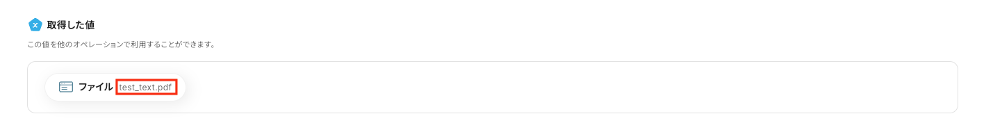 テストが成功すると、以下のように「取得した値」が表示されます。