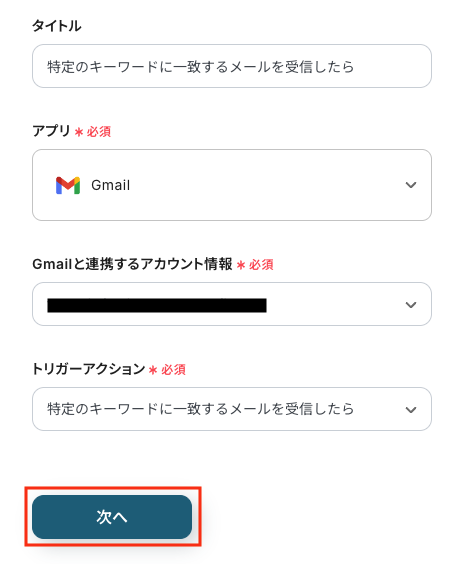 ステップ3:Gmailのトリガー設定