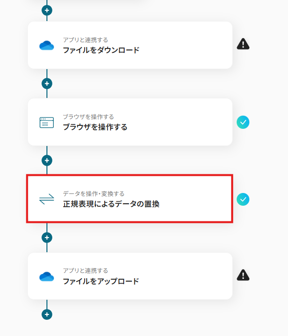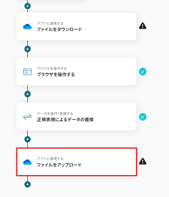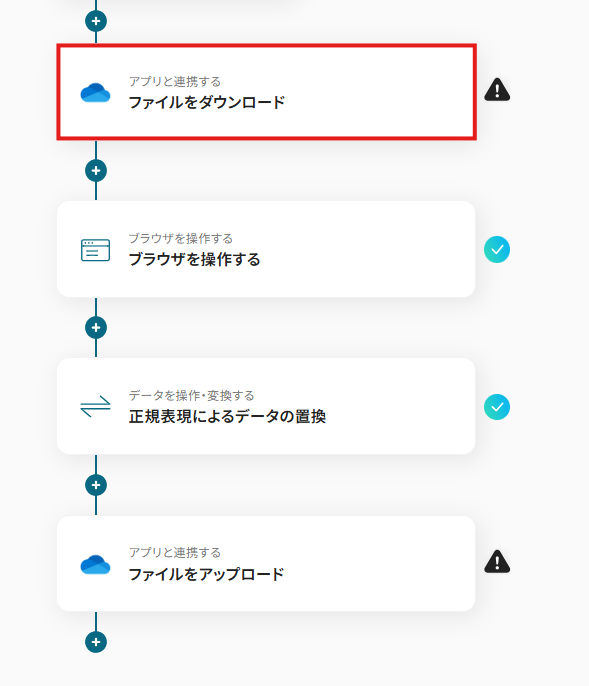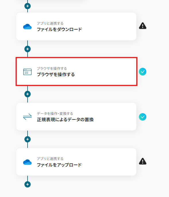 ファイルを変換するためのWeb上の操作として、「3.クリック」というアクションを追加しています。