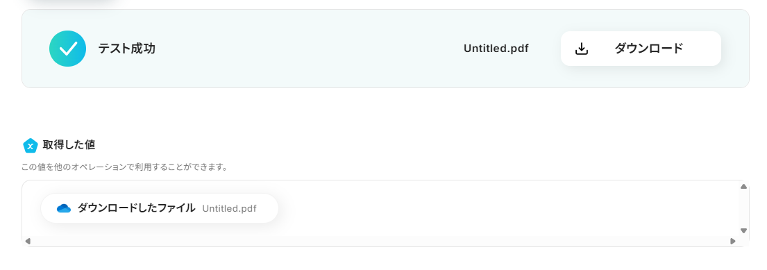 5.入力を終えたら「テスト」をクリックし、「取得した値」にデータが抽出されていることを確認してください。