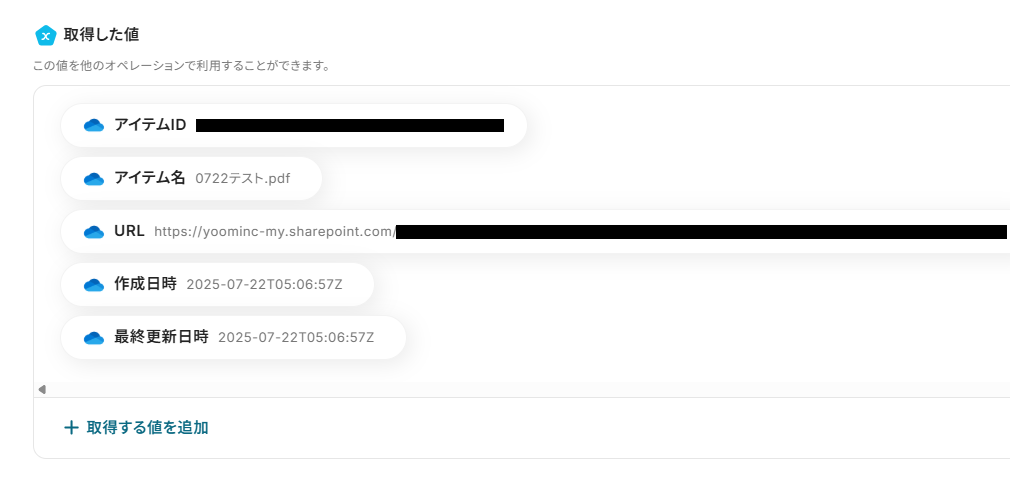 取得した値は、後続の設定で活用できます!