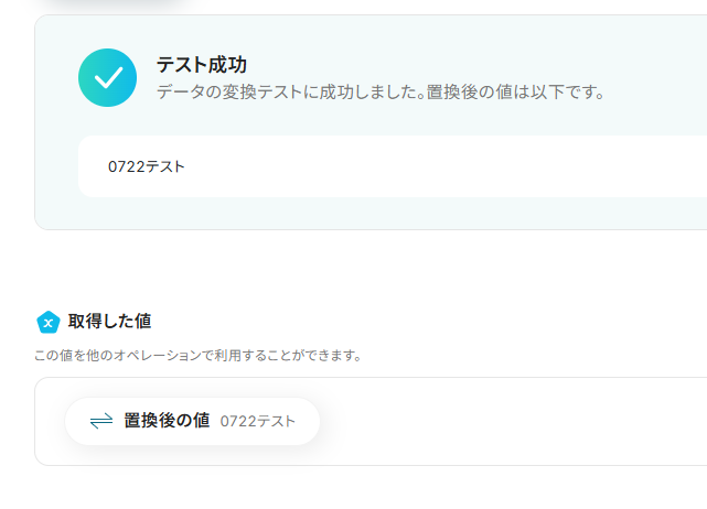 設定を終えたら、「テスト」を実行し、変換に成功したら「保存する」をクリックしてください。