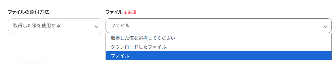 「ファイルの添付方法」「ファイル」は、プルダウンから選択してください。