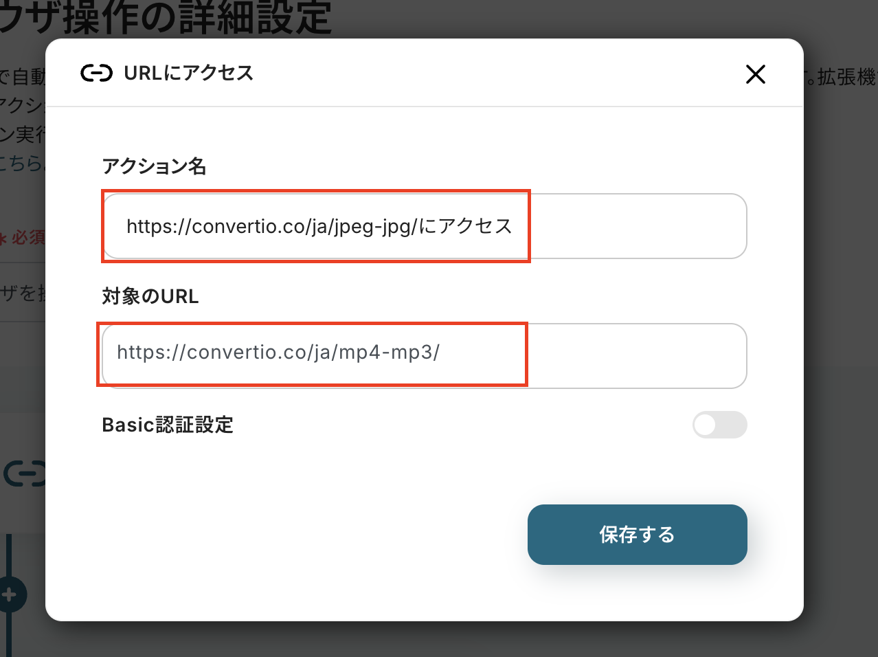 ブラウザを操作するオペレーションの設定方法はこちらを確認してください。