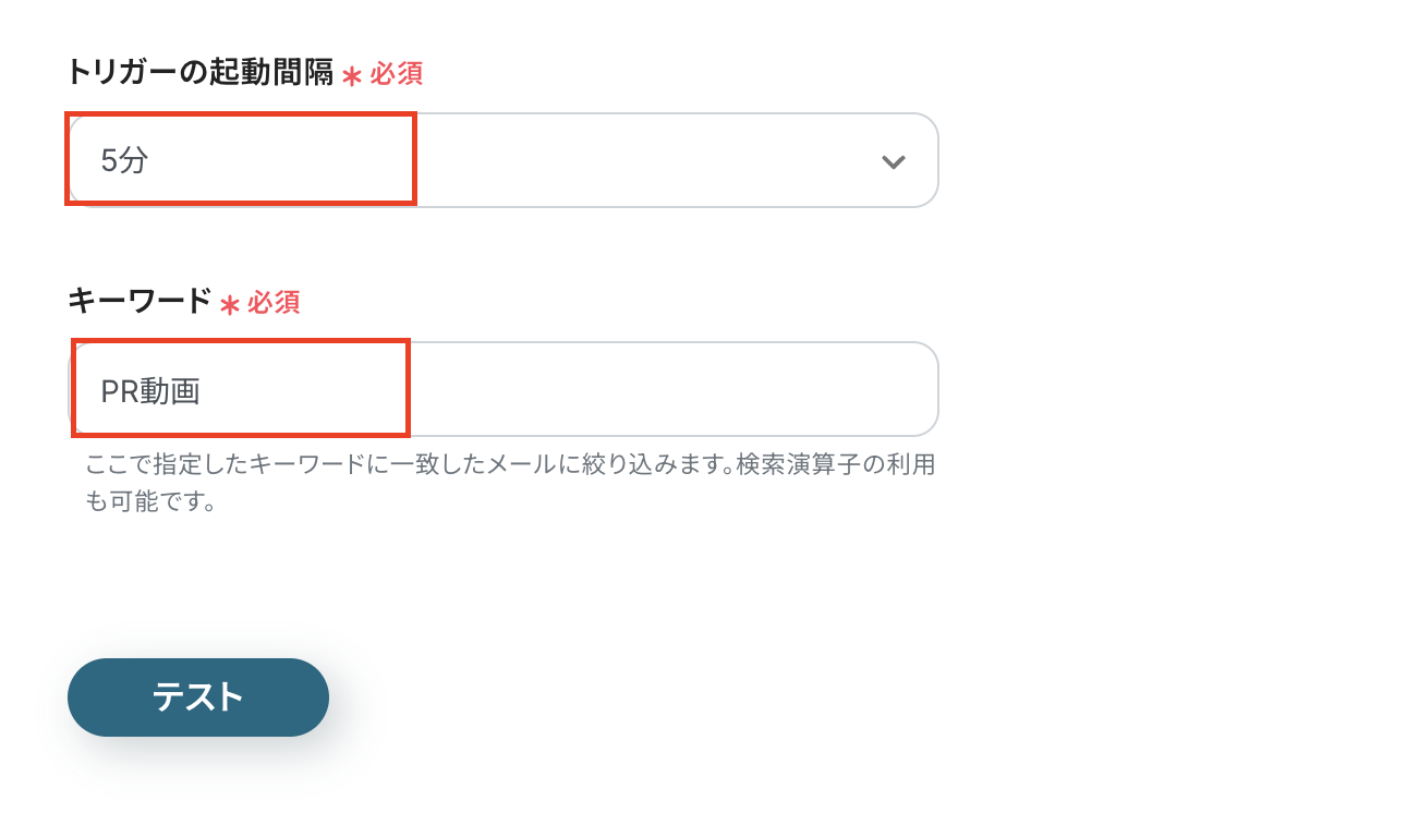 ・トリガーは5分、10分、15分、30分、60分の間隔で起動間隔を選択できます。