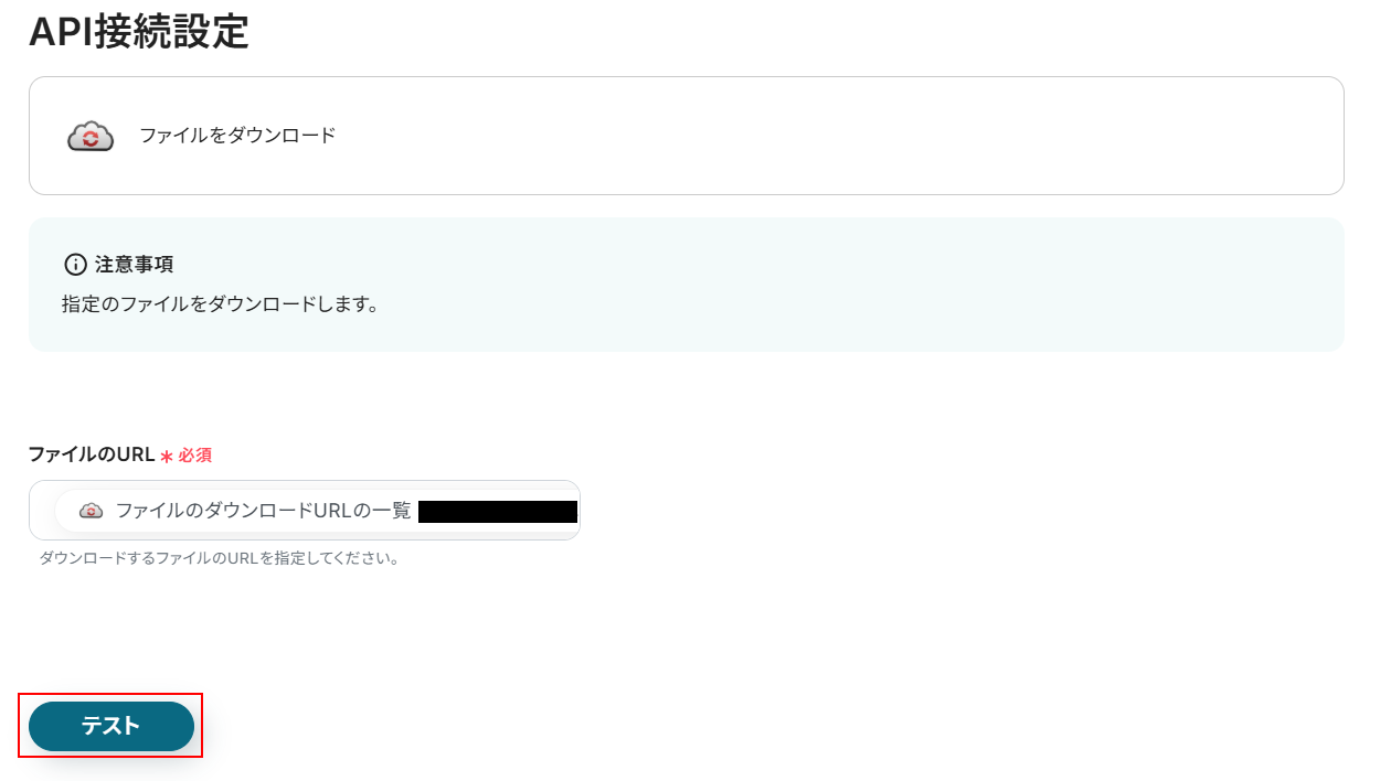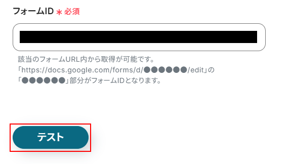 ファイルIDを設定できたら、「テスト」をクリックします。