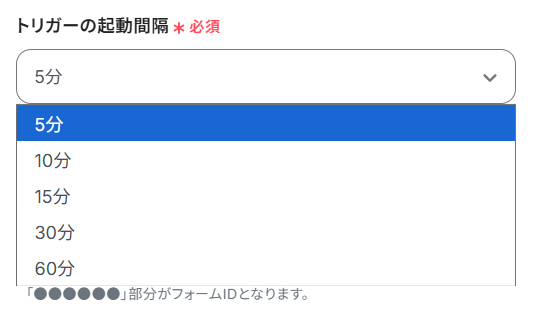 トリガーの起動タイミングは、5分、10分、15分、30分、60分のいずれかで設定できます。