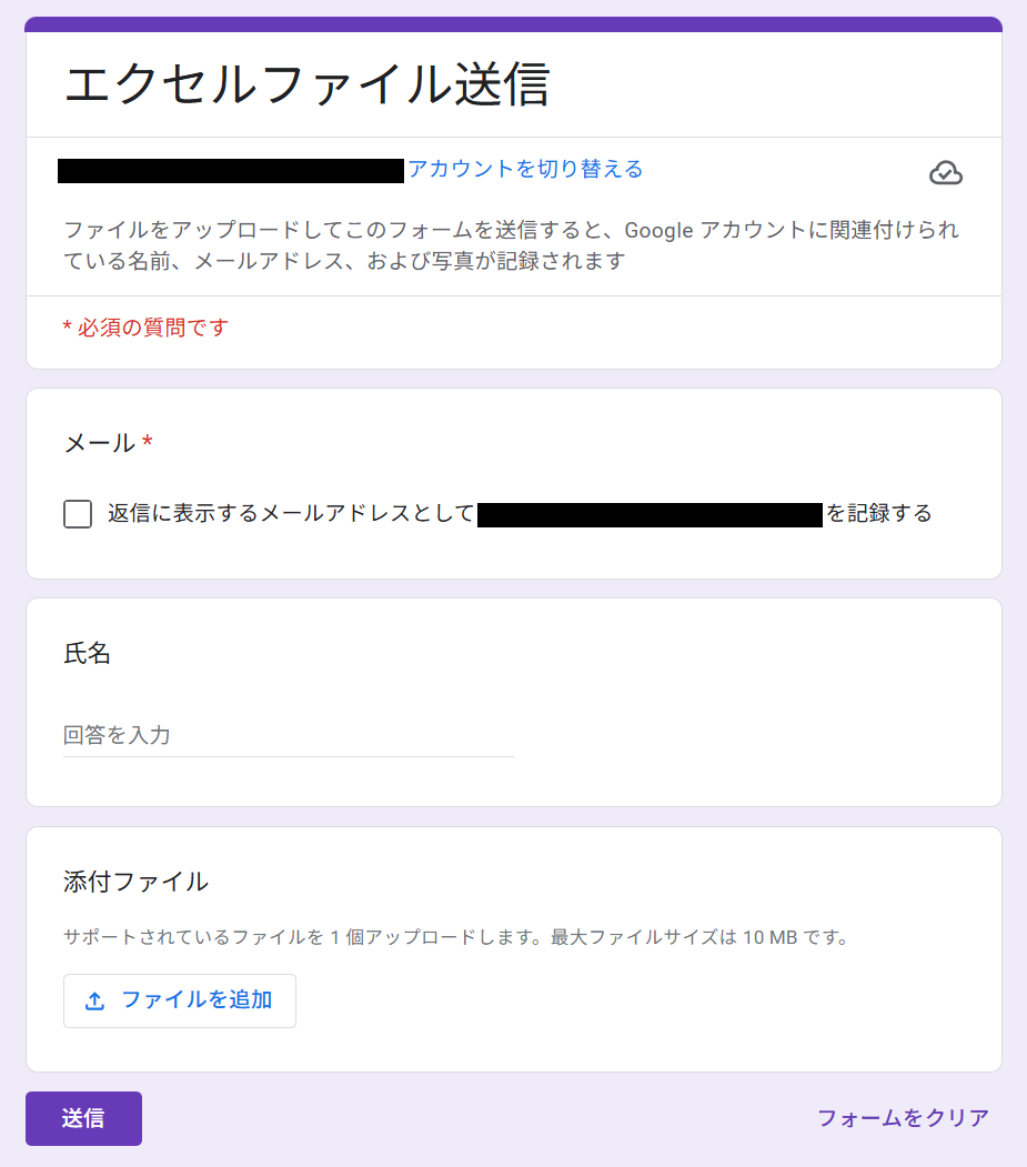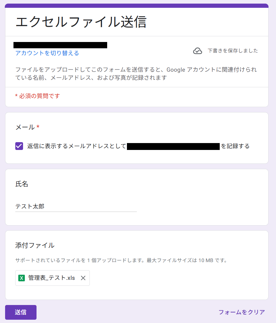 次のステップに進む前に、Google フォームとXLSファイルを準備しておきましょう。 今回は、下記を用意しました。