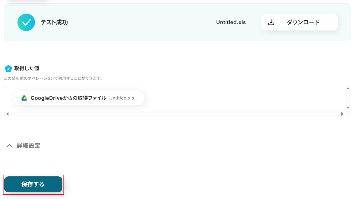 テスト成功画面が表示されているのを確認したら、「保存する」をクリックしましょう。