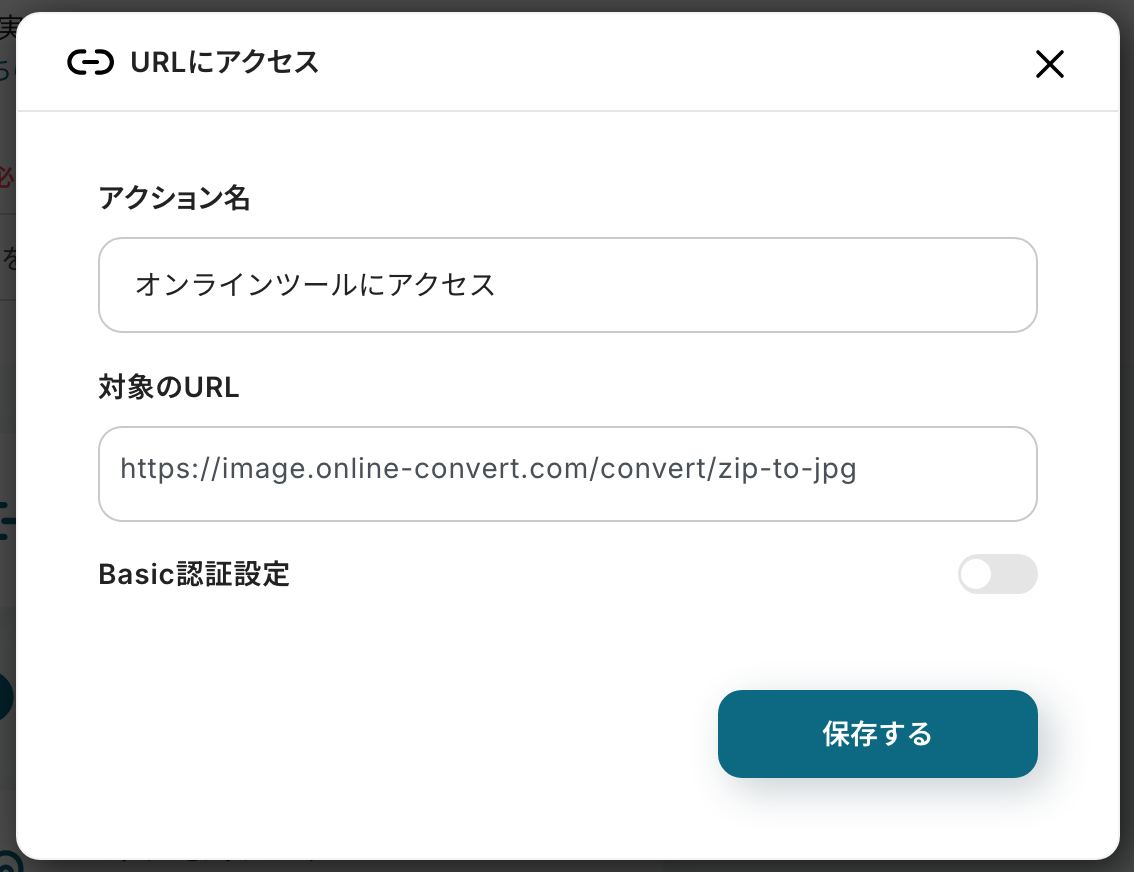 「1.URLにアクセス」では、対象のURLに任意のURLを入力して「保存する」をクリックします。