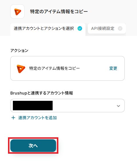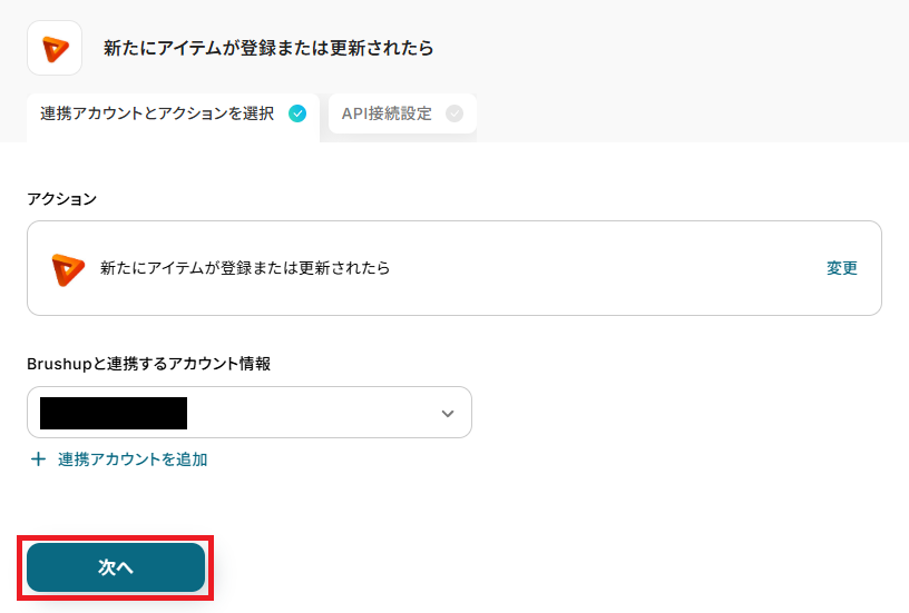 Brushupと連携するアカウントに間違いがないかを確認し、「次へ」をクリックしてください。