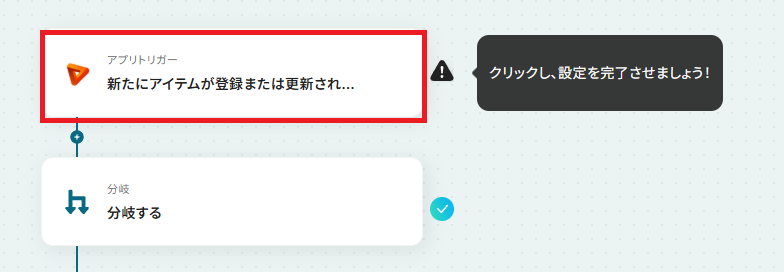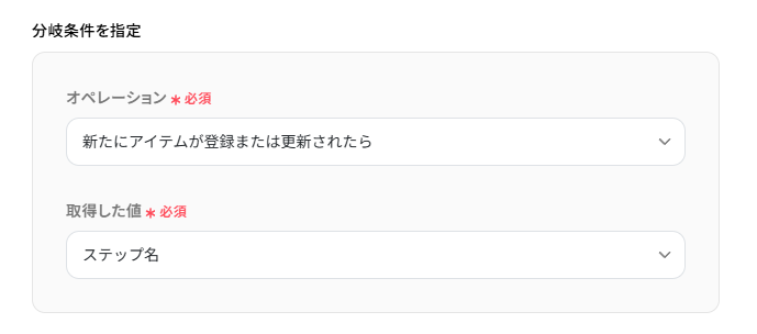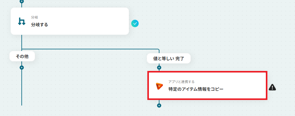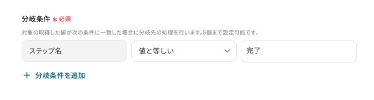 次に、ステ-タスが「完了」した時にのみ処理を進めるよう、分岐条件を指定していきます。