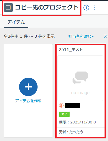 指定のプロジェクトにコピーされました!