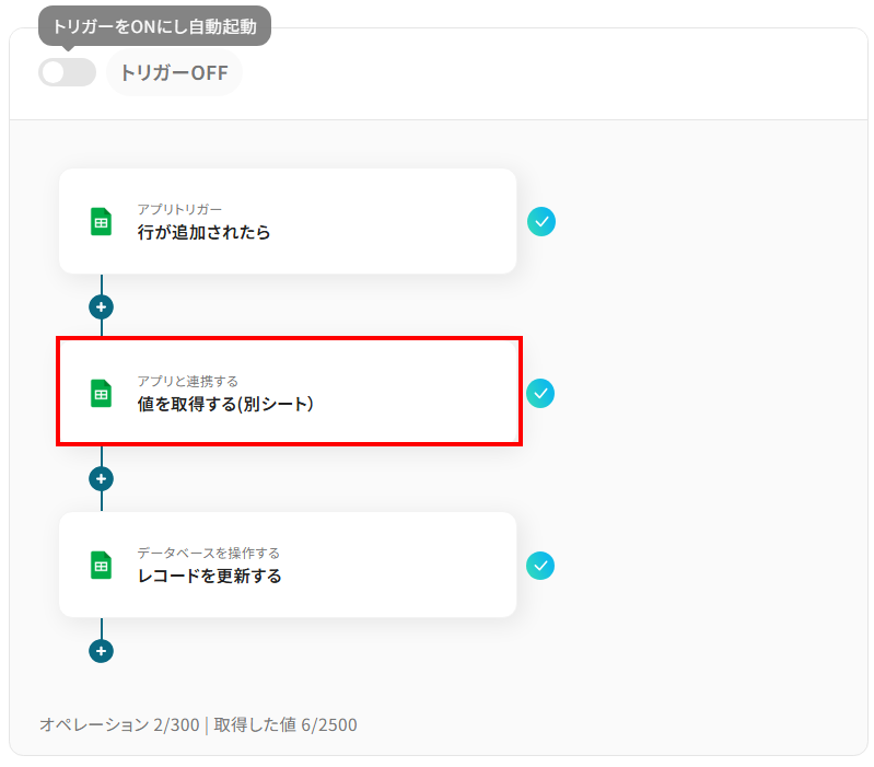 それではここから代表的な例として、Google スプレッドシートの一つのシートに新しいレコードが追加された際に、別のシートから指定した条件に合致するセルの値を取得し、元のシートの特定の列に自動で反映する フローを解説していきます!