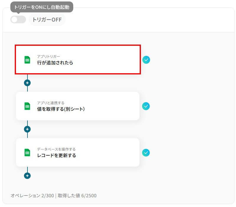 お疲れ様でした!これですべての設定が完了です。 設定が完了すると以下のようなメニューが表示されるので、トリガーをONにします。 これですべての設定が完了したので、動作確認をしてみましょう!