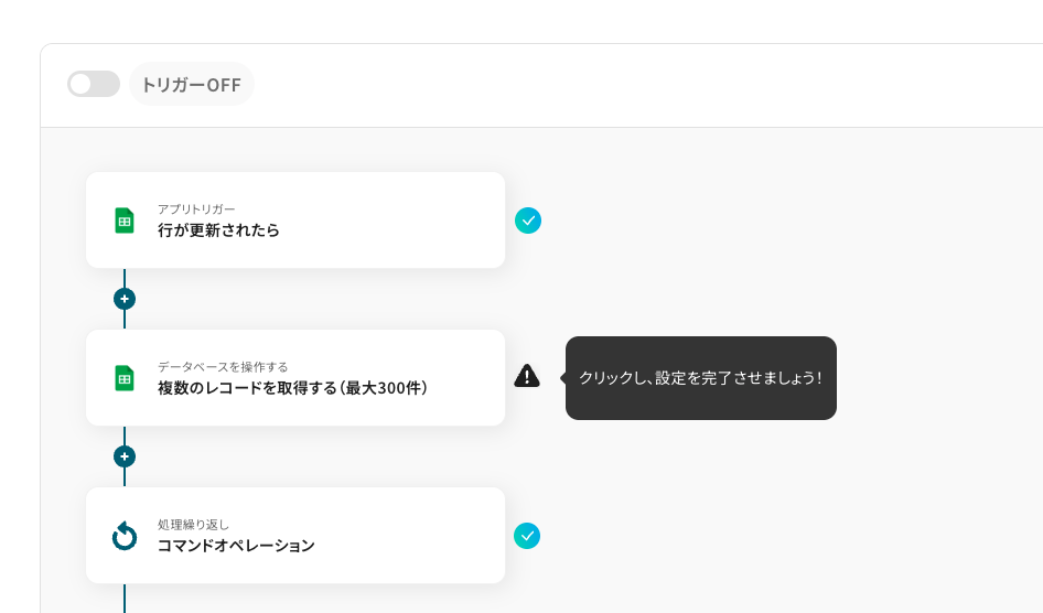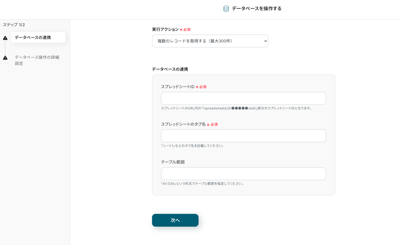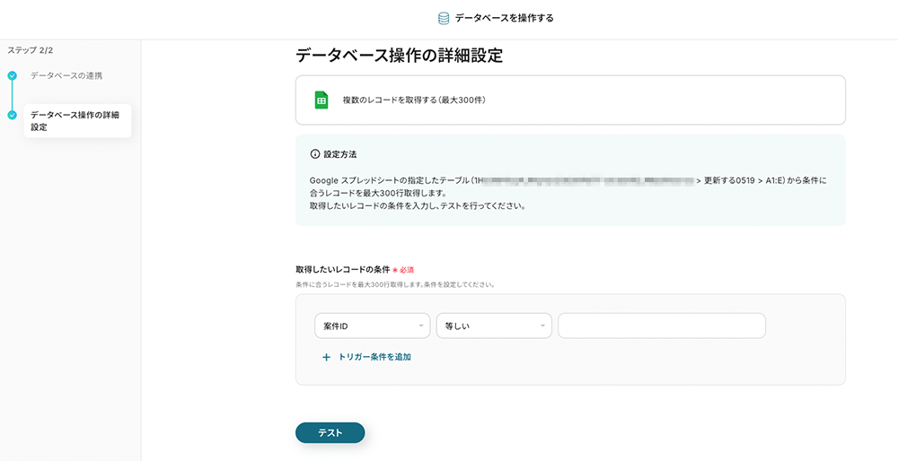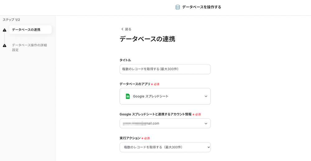 ステップ4:データベースを操作する「複数のレコードを取得する(最大300件)」