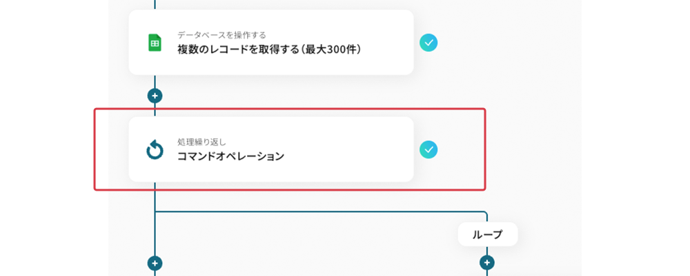 ・「同じ処理を繰り返す」オペレーション間の操作は、チームプラン・サクセスプランでのみご利用いただける機能となっております。フリープラン・ミニプランの場合は設定しているフローボットのオペレーションやデータコネクトはエラーとなりますので、ご注意ください。