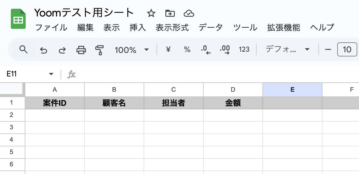 前の画面で指定したスプレッドシートを読み込むと、ヘッダの項目と空白のフィールドが表示されます。