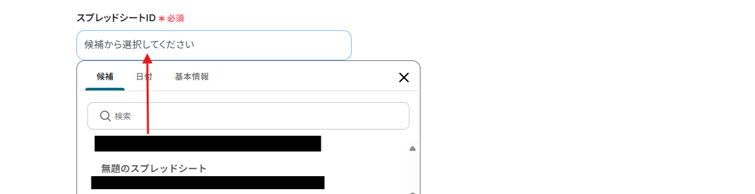 スプレッドシートIDは、先ほど事前準備で作成したシートを候補から選択してください。