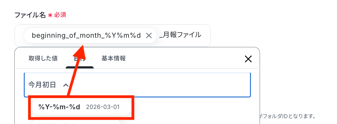Google Driveで月次レポートなどのファイルを管理しているチームリーダーの方 毎月のファイル複製やファイル名の更新といった定型業務に手間を感じている方 手作業による更新忘れや、ファイル名の命名規則のばらつきを防ぎたい方 ■このテンプレートを使うメリット