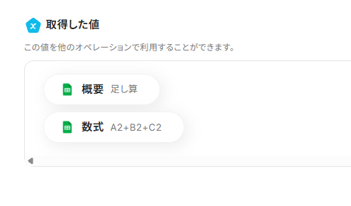 取得したアウトプットは、後続のオペレーション設定時の値としてご利用いただくことができ、フローボットを起動する度に、変動した値となります。
