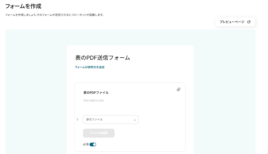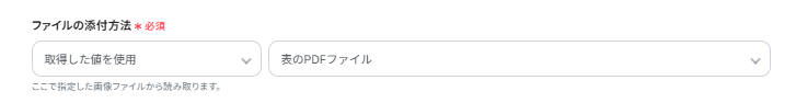 ファイルの添付方法の箇所は、フォームで送信されたPDFファイルから読み取るよう設定されています。
