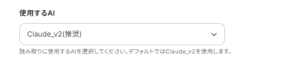 使用するAIは、「Claude_v2」が推奨されていますが、他のAIを指定することも可能です。