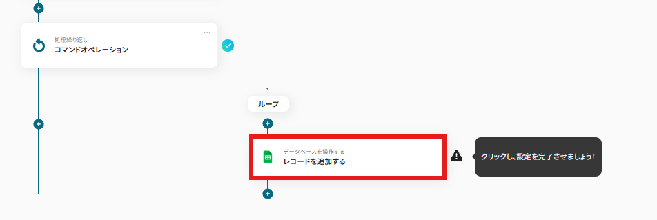 ・「同じ処理を繰り返す」オペレーション間の操作は、チームプラン・サクセスプランでのみご利用いただける機能となっております。フリープラン・ミニプランの場合は設定しているフローボットのオペレーションやデータコネクトはエラーとなりますので、ご注意ください。