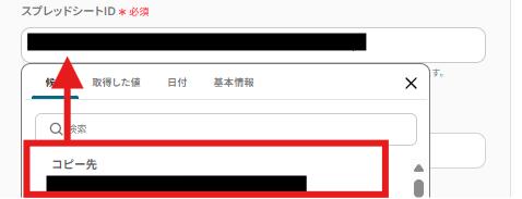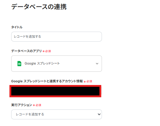 スプレッドシートIDの箇所には以下の画面のように、レコードを追加したいシートの情報を入力しましょう。