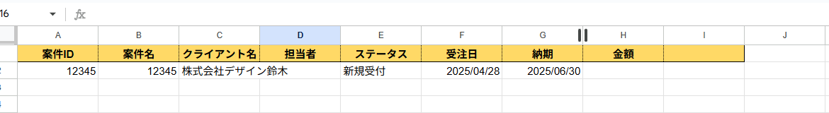 実際にGoogle スプレッドシートに、レコードが追加されているか確認しましょう。