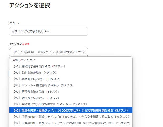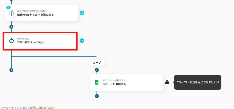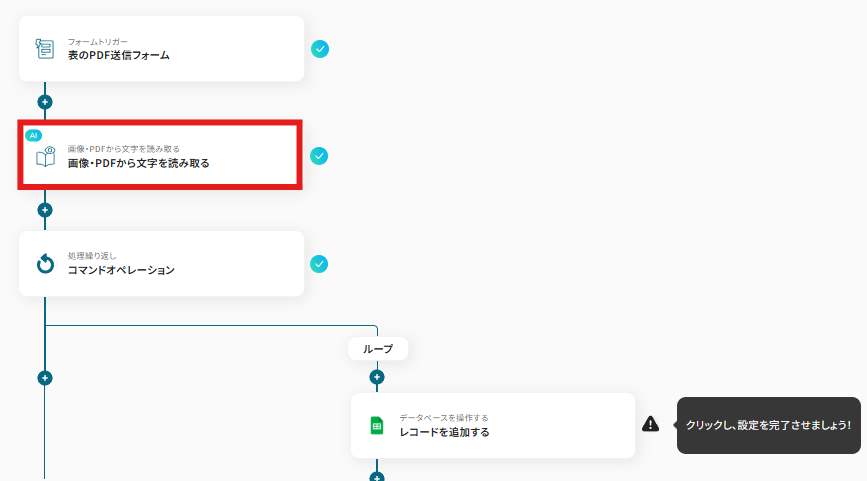 続いてフォームで送信された画像やPDFから文字を繰り返し読み取るための設定を行います。