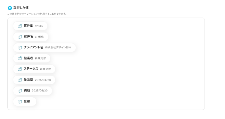 この後、この取得した値の内容を入力に使用することができます。