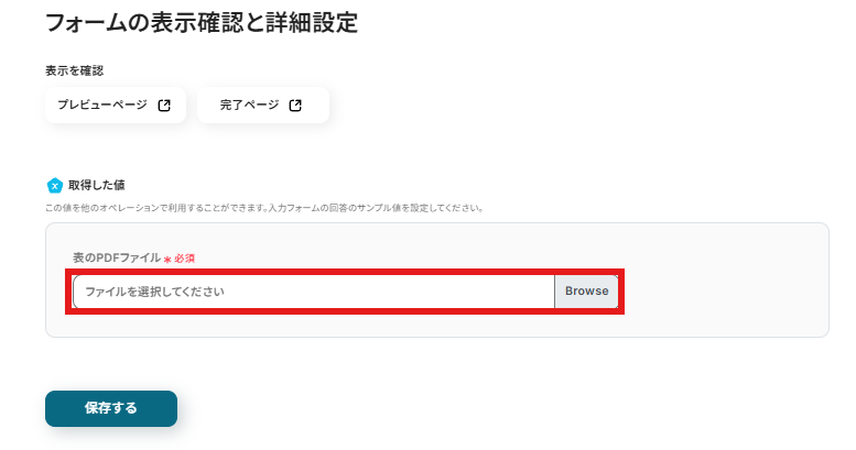 フォームで送信されたPDFから文字を読み取るための設定を行います。